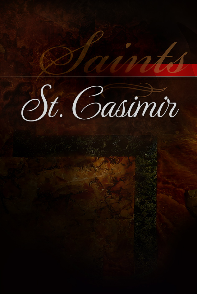 St Casimir was the third among the thirteen children of Casimir III, King of Poland, and of Elizabeth of Austria, daughter to the Emperor Albert II, a most virtuous woman, who died in 1505. He was born in 1458, on the 3rd of October. From his childhood he was remarkably pious and devout. His preceptor was John Dugloss, called Longinus, canon of Cracow, a man of extraordinary learning and piety, who constantly refused all bishoprics and other dignities of the church and state which were pressed upon him. Uladislas, the eldest son, was elected King of Bohemia in 1471, and became King of Hungary in 1490. Our saint was the second son; John Albert the third son, succeeded the father in the kingdom of Poland in 1492; and Alexander, the fourth son, was called to the same in 1501. Casimir and the other princes were so affectionately attached to the holy man, who was their preceptor, that they could not bear to be separated from him. But Casimir profited most by his pious maxims and example. He consecrated the flower of his age to the exercises of devotion and penance, and had a horror of that softness and magnificence which reign in courts His clothes were very plain, and under them he wore a hair shirt. His bed was frequently the ground, and he spent a considerable part of the night in prayer and meditation, chiefly on the passion of our Saviour. He often went out in the night to pray before the church-doors; and in the morning waited before them till they were opened to assist at matins. By living always under a sense of the divine presence he remained perpetually united to, and absorbed in, his Creator, maintained an uninterrupted cheerfulness of temper, and was mild and affable to all. He respected the least ceremonies of the church: everything that tended to promote piety was dear to him. He was particularly devout to the passion of our blessed Saviour, the very thought of which excited him to tears, and threw him into transports of love. He was no less piously affected towards the sacrifice of the altar, at which he always assisted with such reverence and attention that he seemed in raptures. And as a mark of his singular devotion to the Blessed Virgin, he composed, or at least frequently recited, the long hymn that bears his name, a copy of which was, by his desire, buried with him. His love for Jesus Christ showed itself in his regard for the poor, who are his members, to whose relief he applied whatever he had, and employed his credit with his father, and his brother Uladislas, King of Bohemia, to procure them succour. His compassion made him feel in himself the afflictions of every one.