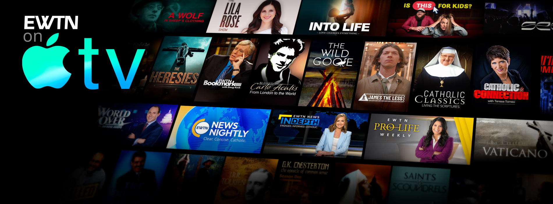 Apple TV is a device that allows you to instantly stream EWTN to your TV. Apple TV is a device, not a service. To get EWTN on your Apple TV, all you need is a high speed Internet connection, a TV and the Apple TV device. The Apple TV connects directly to your TV and can be connected wirelessly to your internet router. Note that you can only watch EWTN on a 4th generation or later Apple TV.